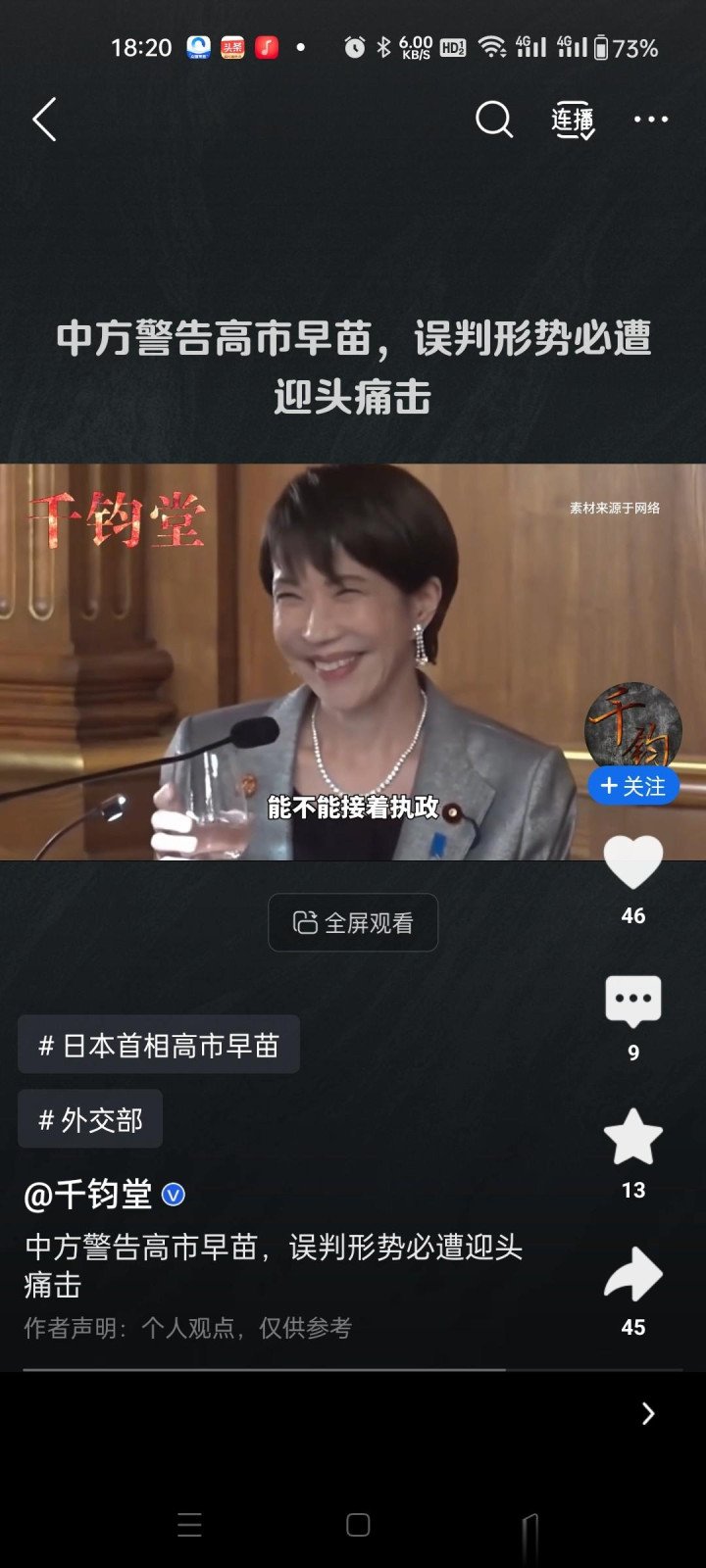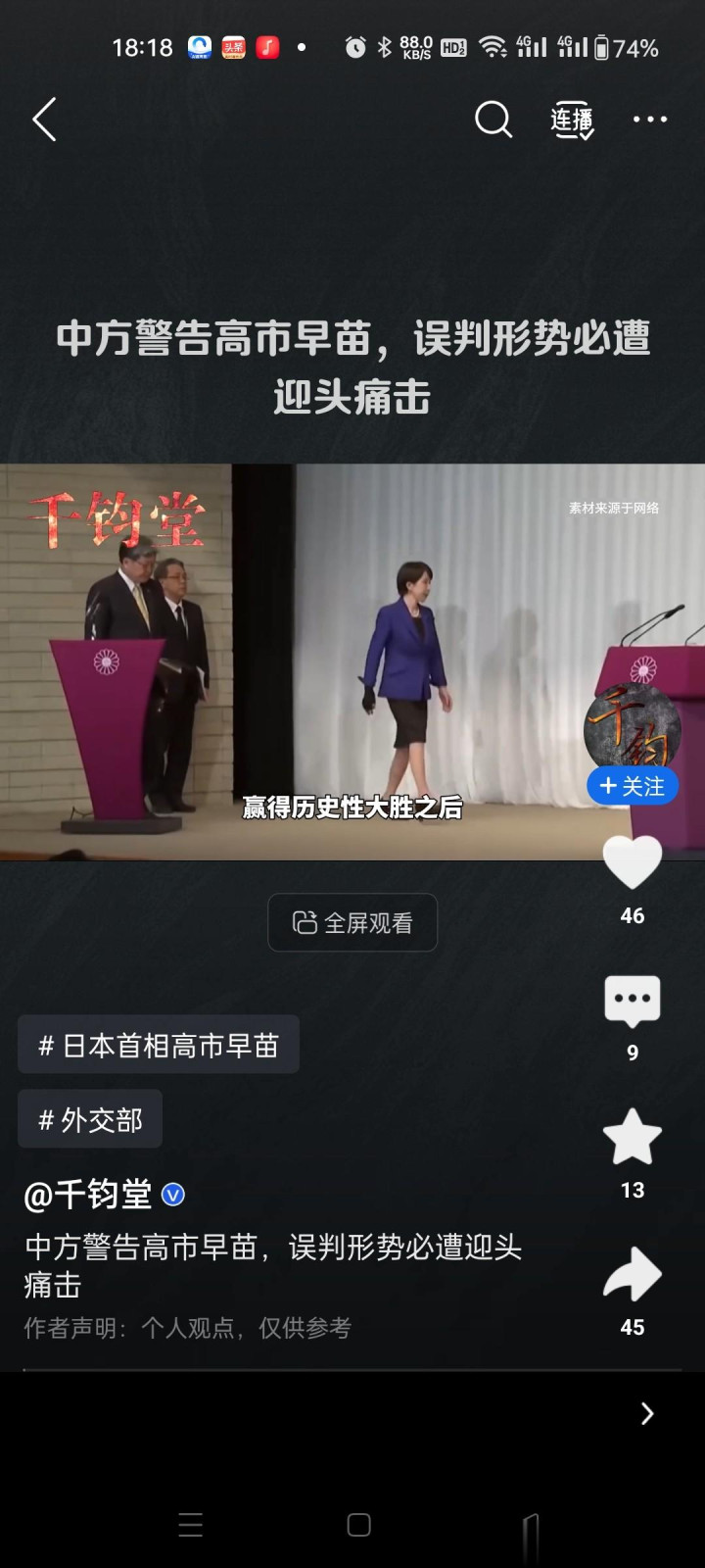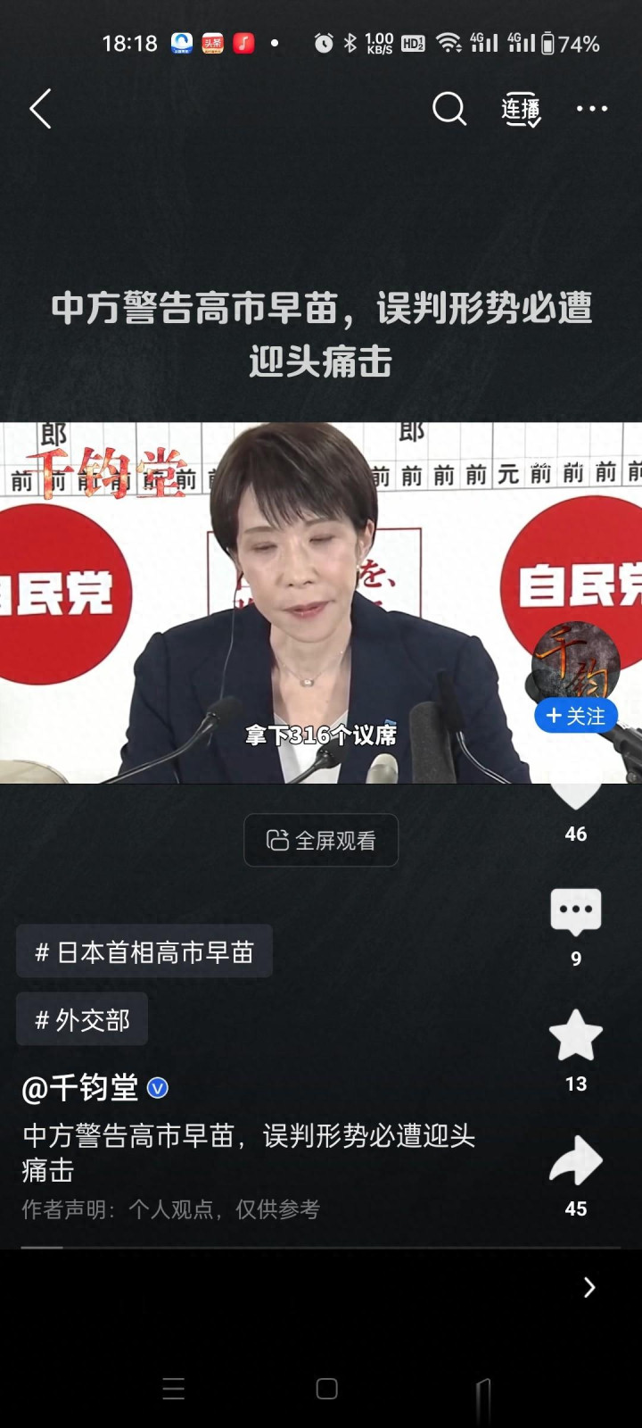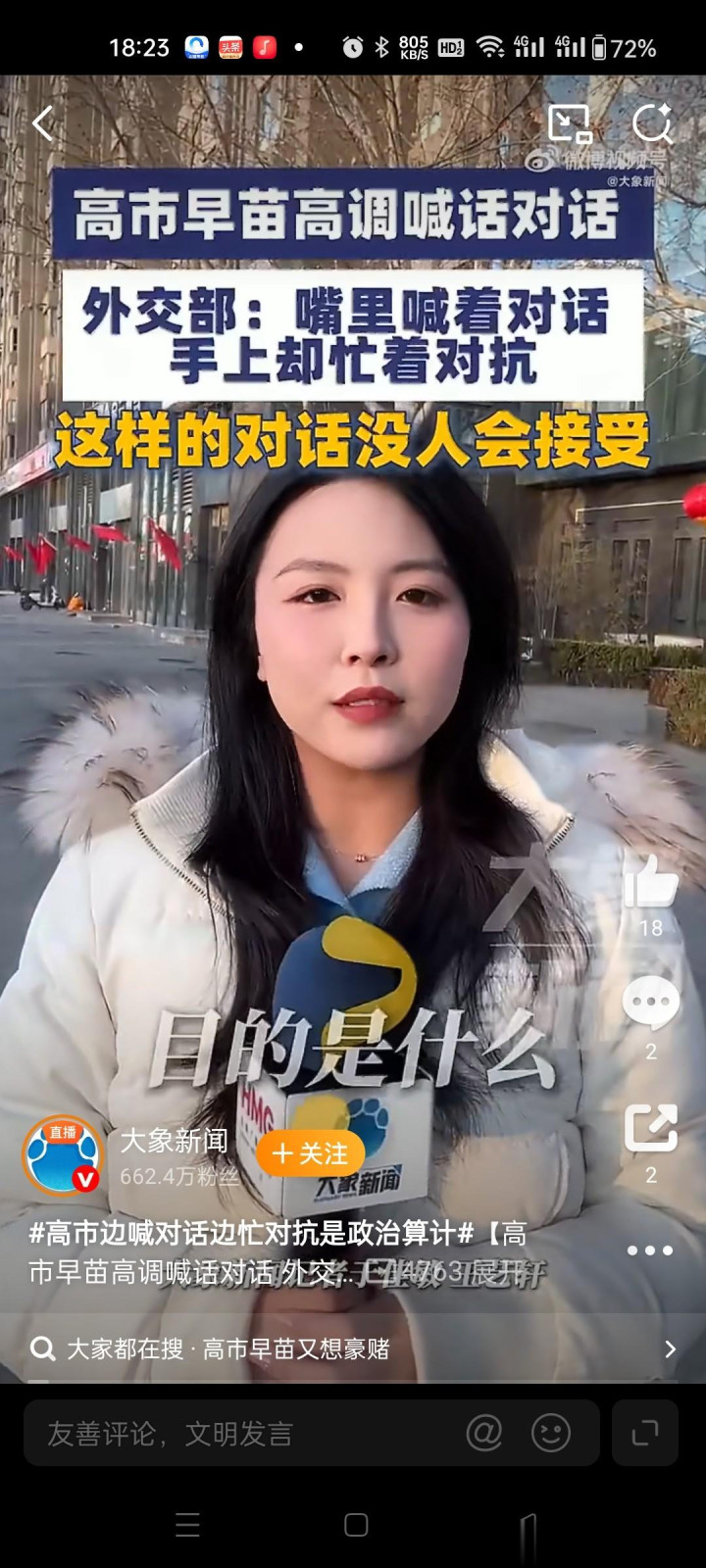 战术性喊话:高市胜选后急需缓解因极右翼立场导致的外交孤立,释放对话信号实为"公关回摆",试图塑造缓和形象。@大象新闻
